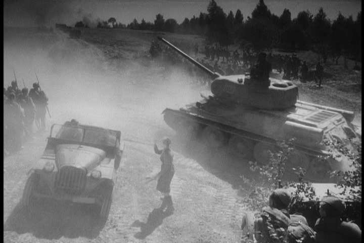 Military hardware buffs and gun nuts will find this film worthy of a watch, if you happen to be too shallow a man to enjoy a good love story. There are the obligatory cords of Mosin Nagant rifles in this film. Alyosha knocks out two German “Tiger” tanks with a Simonov 20mm rifle in the combat scene. There are numerous T-34s, both in Russian guise and disguised as German tanks. You’ll see some fine footage of ZIS and GAZ trucks and a GAZ jeep, along with excellent railroad footage.