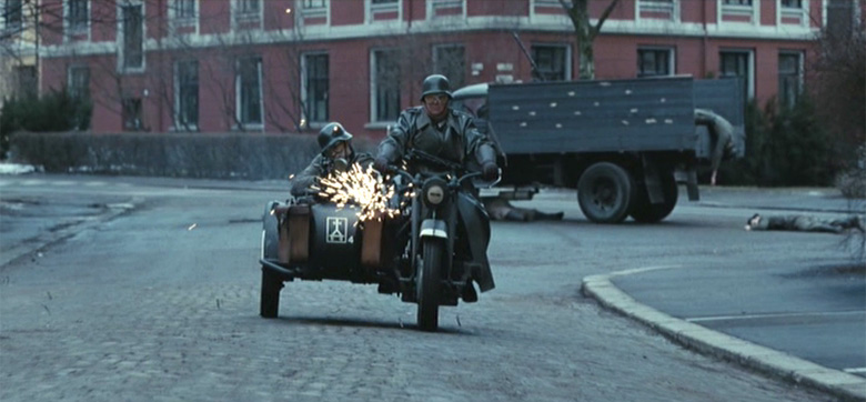 The film is action packed and filled with suspenseful situations. In one scene, a sympathetic nurse aides the captured and injured hero and is sniffed out by Gestapo chief Siegfried Fehmer, who Manus becomes very acquainted with over the course of his career. The nurse does her best, takes great risk, and the clear indication is revealed that she will certainly be punished. You’ve got to feel for her. War touches everyone.