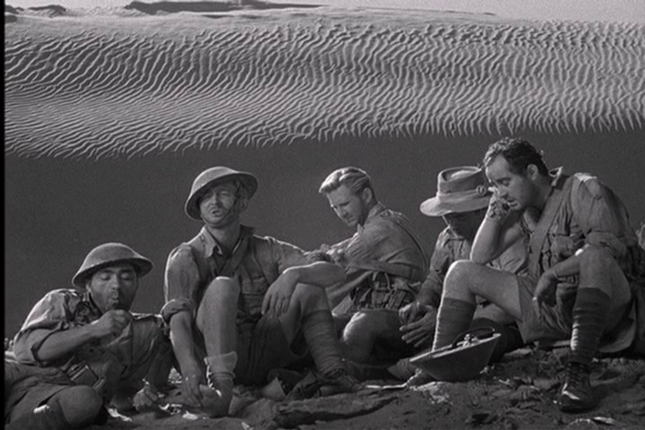 Gunn also picks up others, including a Frenchman and Sudanese man, and they manage to rescue a hostile German pilot who had strafed them moments before. The rag tag collection of friends, allies and enemies learn of a well, rumored to be in an old Roman fort. The story takes a turn for the better when the men find the well, and discover the water still drips. It drips painfully slow, but its water. Now the group has a strategic advantage in the parched desert theater.