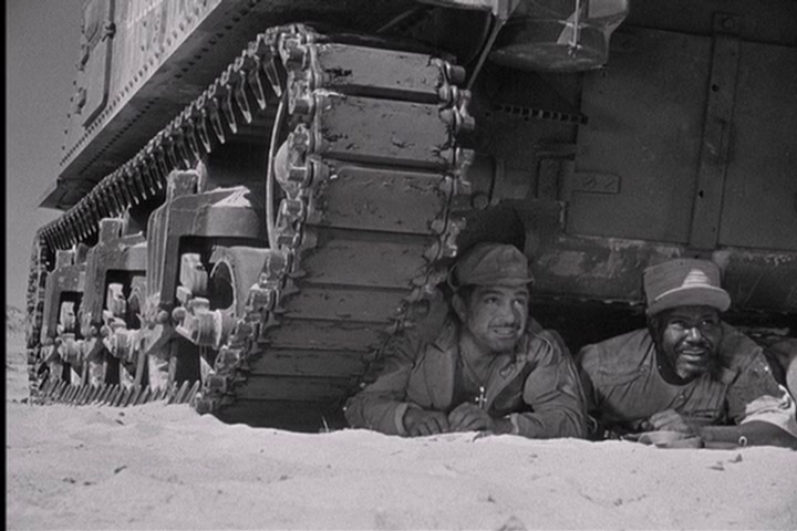 Some of the technical effects are rather goofy, as one expects from the period. The German aircraft that strafes the group in their tank is an early, Allison-engined P-51B, but close ups of the aircraft show what looks like a ridiculous paper mache fairing with stubby little machine guns mounted in the fuselage. Ahhh, Hollywood!