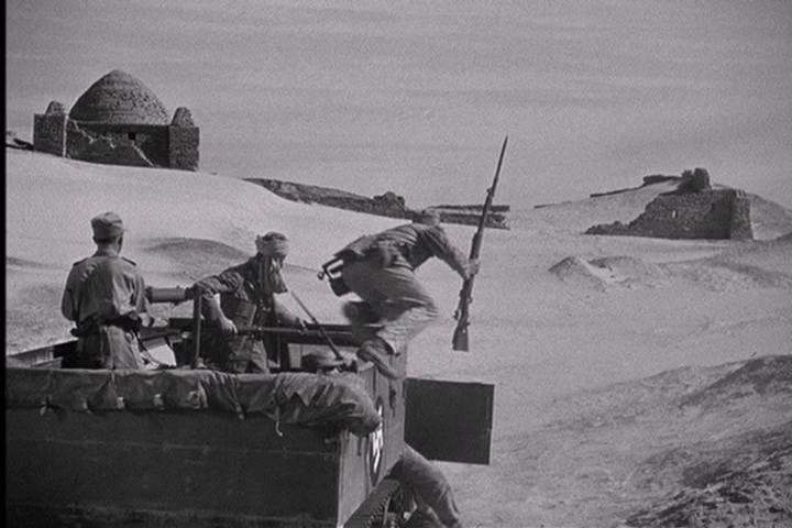 The Germans send a delegate to discuss surrender terms, after all, a ragtag group like this certainly cant beat back the might of Rommel’s Afrika Korps. The German tells Bogart “You can save your life.” Bogart, in his typically tough-guy manner, replies “ You’ve heard my offer. Water for guns.” The German turns and leaves.