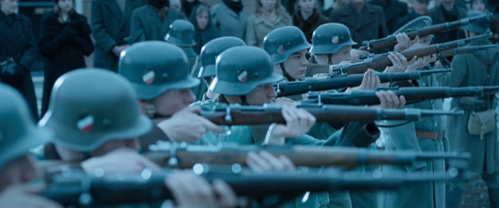 Later, Michiel discovers Jack, one of the two crewman of the Mosquito, hiding in the woods. He enlists his sister, a local nurse, to help tend to Jack. He and his sister seek to smuggle him across river and to safety, but it doesn’t go well. Michiel’s father gets rounded up by the Germans as part of a retaliation for the loss of a solider. We learn that one of the British pilots killed the missing German soldier after the plane crash. But just before the arrest scene, there is a tender moment between Michiel and his father as he helps his young son learn to shave. It is almost a cheap shot right to the heart, but works well to set the stage for great angst. The arrest and Michiel’s attempted visit at town hall show that even when there is a lack of respect for principles, there is a father-son bond that is unbroken. Michiel wishes to rescue his father, but instead, shows up too late. He sees his father shot before a Nazi firing squad. So much for appeasement, but how terribly tragic it is. Reality is cold, and our heart bleeds for young Michiel.