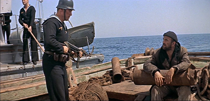 The film is not perfect, of course. There is a bit much of that mid-twentieth century dramatic hip-shooting where soldiers (whom we presume are well trained in proper marksmanship) simply shoot from the waist without any real aim or skill. It is amazing anyone ever gets hit when no aiming is employed. There is a lousy and overly sappy scene near the end where one of our Greek partisan heroes has a standoff with the Nazi commander, each pacing toward one another in an over-the-top Western street fight scene. Also challenging is the lack of recoil when firing weapons. Its really bad. The effects are convincing enough for the day, the shipwreck scene is one of the classic sound stage raging ocean scenes where the sea is convincingly portrayed in all its fury. Well done, a good one. Some of the green screen shots leave a bit to be desired, but its the 1960’s, and barely. The miniature model at the end is a bit campy, reminding me more of an Ultraman scene or something out of a Disney epic of the day (Island at the Top of the World, for example). But these can be overlooked given there just was no technology in that day to get the needed shots. Bravo for the FX department for using what resources they had.