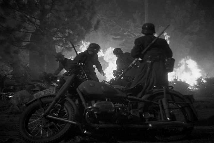 If you are into weird and unusual interpretations of German aircraft, and who isn’t, this film is for you. The interpretation of fuzzy photos of Axis aircraft are close… sort of, in shape to the real deal. Clearly the allies had not yet had close looks at the real deal. The Stuka is almost laughable. To a post-war mind used to seeing perfect renditions of enemy aircraft down to the correct number of rivets, these are some startlingly poor replicas. Given the year of production, they get a pass. Likewise, the Germans carry Mausers, but they are WWI-era long Mausers rather than the carbine-length K98s issued during the war. Still, at least they are Mausers.