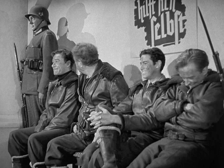 Inevitably, the crew get shot down by the Germans deep behind lines, and begin their over-land trek back to England. With each challenge our heroes rarely lose hope, they are dutifully self-sacrificing, and they keep cutting up in good spirits all the way. The men are duty-bound to add secondary missions to their escape, as all good allied men ought to, right? They are witty and wise-cracking, even treating their Nazi captors like school-teachers, spitting seeds on them and luring them into impromptu traps like gullible oafs. The producers paint the Nazis in very poor light, which, while they were evil and worthy of ridicule and mockery, they were not stupid fools. But in the end, the movie is a light and entertaining adventure in the classic way, and I enjoyed it.