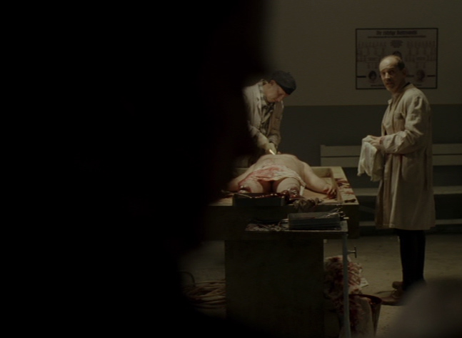 The extreme shallow depth of field, blurring almost everything outside of the immediate characters, is a bit annoying at first. I was terribly put off by this in combination with the shaky camera. But then I saw the brilliance of it. Such a shallow depth of field becomes a beautiful way to show extreme gruesomeness with a level of restraint, and that is appreciated. The mind can easily fill in the gory details of the plain images depicted in the background and just outside of focus. Well-done. It also directs our focus to the personal story as the primary story, rather than the tale of the crematoria, successfully told in other films and books.