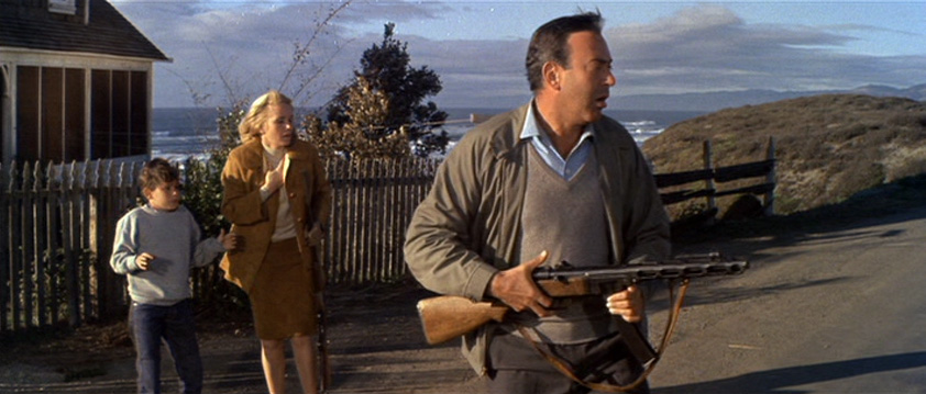 When Rozanov and his men leave Whittaker and his family under the custody of ‘marksman of prize winning caliber’ (said in a thick Russian accent) Alexei Kolchin, Whittaker overtakes Alexei, takes his submachine gun, and then leaves on a rickety bicycle to get to town. The remaining story is a comedy of errors, exaggeration, panic, hysteria and alarm. And Alexei… he falls for a local girl.